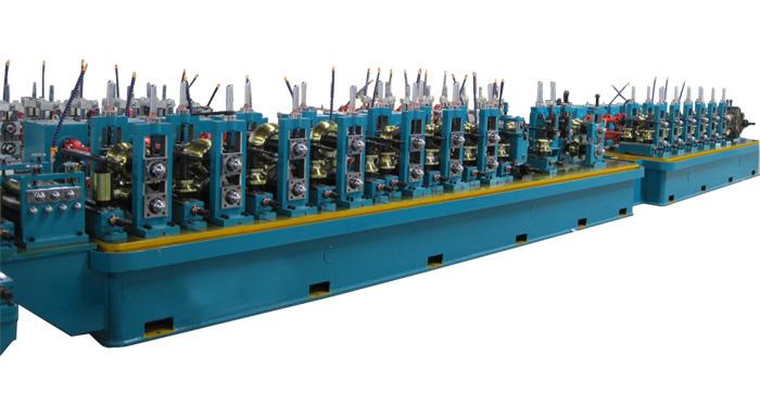 Welded tube mill is complete equipment for welding steel pipes. It rolls the strip or plate then welds the tube to steel pipes by HF welding or submerged arc welding.Welded pipe making machine is composed of uncoiler,leveling machine,butt welder,loop,straightening machine and high frequency equipment.